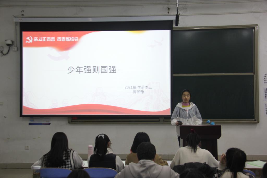 比赛过程中,2021级教育学班苏涵题为《以吾少年意气,筑祖国万里恒昌》的演讲尤为精彩,在《我爱你中国》的动人旋律中,苏涵饱含感情地讲述了新时代青年的责任与担当,展现了中国共产党百年华诞之际青年一代的拳拳爱国心。而来自学前教育一班的王琪同学的展示也让人眼前一亮,以中国红为底色的幻灯片不仅暗呼主题,也让她“少年强,则国强;少年智,则国智;少年富,则国富”的铮铮誓言显得铿锵有力,让张载“为天地立心,为生民立命,为往圣继绝学,为万世开太平”的志向再次入耳入心。教育学班张凯凯则在新时代中国取得的伟大成就中认识到,“未来属于青年,希望寄予青年”,我辈青年应当不负韶华,努力奋斗。整场比赛掌声不断,高潮迭起,经过一个多小时的激烈角逐及现场评委讨论,苏涵、王琪、张凯凯荣获大赛一等奖,黄迎奥、范浩然、刘如仪等同学荣获二等奖,吴芳芳、孙想丽、丁建峰等同学荣获三等奖。