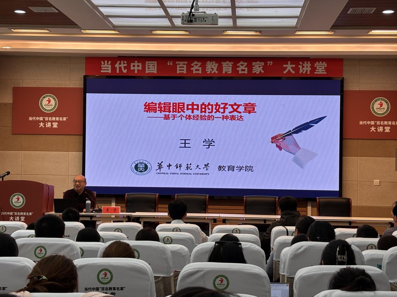 时间:2025-04-25 16:26:59 来源: 作者: 阅读: 次4月24日下午,应bevitor伟德国际1946邀请,华中师范大学王学教授在教科院301报告厅做了专题为“编辑眼中的好文章——基于个体经验的一种表达”的讲座。会议由bevitor伟德国际1946经理何安明教授主持,全体教师及部分研究生、本科生参加了此次会议。