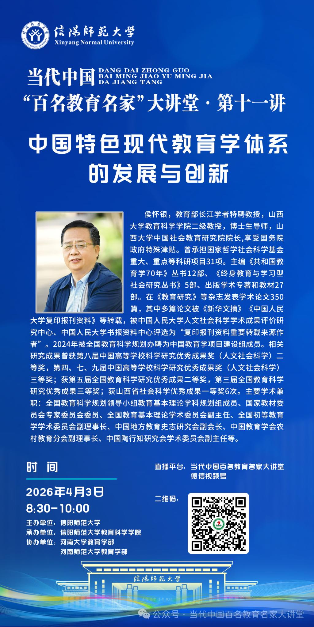 时间:2026-03-27 11:38:26 来源: 作者: 阅读: 次报告主题:中国特色现代教育学体系的发展与创新