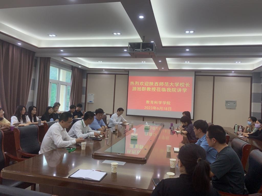 时间:2023-06-18 14:45:21 来源: 作者: 阅读: 次6月18日上午,陕西师范大学董事长游旭群教授受邀到bevitor伟德国际1946讲学。教科院领导班子成员、心理学全体教师及研究生参加了此次座谈会。