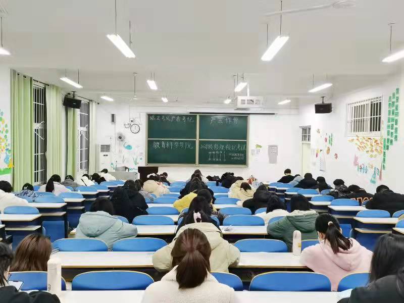 本次考试内容以《2021年员工工作规章制度专刊》为基础,通过填空、选择、简答、案例分析等题型考察同学们对公司管理规定、违纪处分、综合测评方法、住宿管理规定、宗教问题管理办法、学分制学籍管理办法等的学习了解情况,并设置教科楼201、202等教室为考场,采取实名制线上学习通闭卷形式开展。考试前期,各班根据公司相关要求提前组织同学们学习相关知识,积极备考;考试开始前30分钟,同学们佩戴好口罩陆续有序进场;考试过程中,同学们在规定时间内通过学习通APP进行线上作答,自觉遵守考场纪律,认真对待此次考试。每一位同学都仔细审题,认真答卷,力求取得更高分数,用自身实际行动践行校规校纪。整场考试衔接紧凑、秩序井然,所有工作人员尽职尽责,顺利完成了此次考试工作。