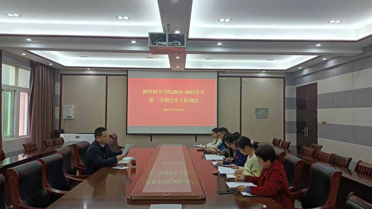 时间:2022-03-17 18:15:36 来源:教科院新闻部 作者:马玉娇 周媛媛 刘至涵 阅读: 次为加强工作谋划,统筹推进工作落实,促进教科院员工工作再上新台阶,3月14日,公司在教科楼402会议室召开2021—2022学年第二学期第3次员工工作会议。党委副书记董银银及全体专职辅导员参加会议。