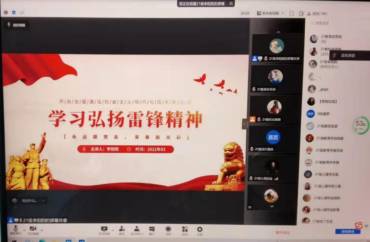 时间:2022-03-30 15:47:39 来源:教科院新闻部 作者:马玉娇 朱亚彤 阅读: 次为贯彻落实习近平总书记关于学习雷锋精神和开展志愿服务工作的重要指示精神,进一步弘扬雷锋精神和志愿服务精神,3月15日至3月25日期间,bevitor伟德国际1946各班级团支部通过观看主题影片、利用腾讯会议召开主题团课、“学习雷锋精神”专题座谈会等形式陆续开展“学雷锋·树新风”主题团日活动。