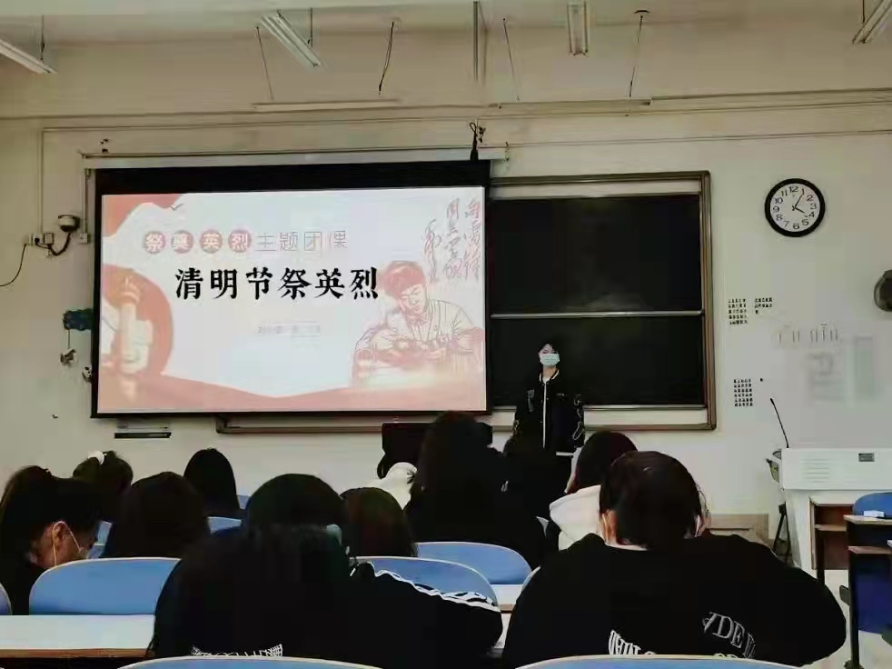 在庄严的《光荣啊!中国共青团》歌声中,本次团课正式拉开帷幕。各班团支书首先介绍了清明节的由来和风俗习惯,随后以图文结合的方式组织同学们回顾英烈事迹,学习英雄人物故事。同时联系实际,带领大家深刻缅怀疫情爆发以来不断涌现的抗疫英雄以及东航事故的遇难人员,倡导大家学习当代英雄,哀悼民族同胞,唤起他们内心深处的民族精神和爱国热情。团课最后,全体团员集体起立为英雄们默哀,彰显了当代青年学子对英雄的敬重与怀念。