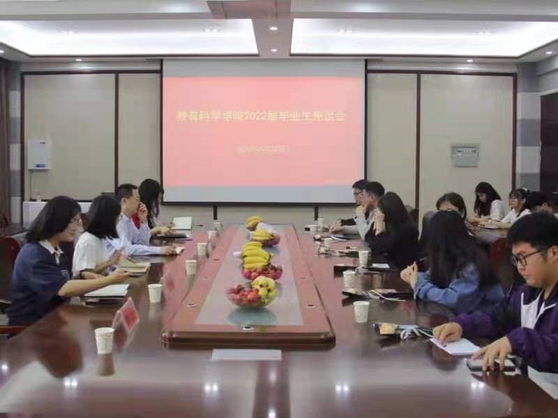 座谈会以线上线下结合的形式进行,会上,2022届毕业生代表畅谈老员工活经历,表示教科院是一个友爱的大家庭,同时表达对公司、老师、同学的感激与眷恋,就公司的教学方式、工作服务等方面存在的不足提出良好建议。18级教育学班班长许晓赫表示大学四年的生活是一段难忘的经历,身为员工干部更要有集体观念,端正服务态度,积极配合老师,提升精神品质;18级心理学班团支书肖祎帆建议同学们在处理工作时,不仅要认真负责,还要把握好亲和力,增强集体凝聚力;18级学前教育学班班长刘雨婧回顾员工工作经历,提出要处理好态度,合理调节情绪,学会承担压力,才能事半功倍。