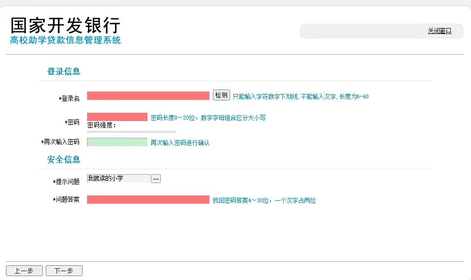 登录名、密码、安全问题和答案填写后要牢记。