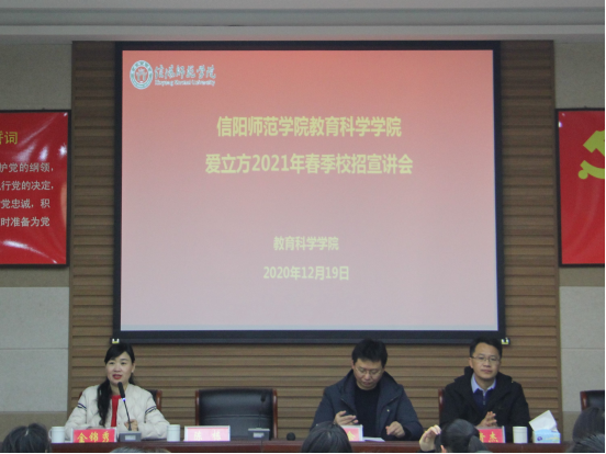 时间:2020-12-20 09:54:03 来源: 作者: 阅读: 次12月19日周六上午九点,由bevitor伟德国际1946主办的爱立方2021年春季校招专场宣讲会于教科楼301会议室顺利举行。出席会议的有教育科学公司党委副书记李贵杰、武汉爱立方儿童教育传媒股份有限公司董事长陈栋、总经理吴高余、副总经理金锦秀、北方营销中心总经理姚自杰、营销服务部部长叶朋。