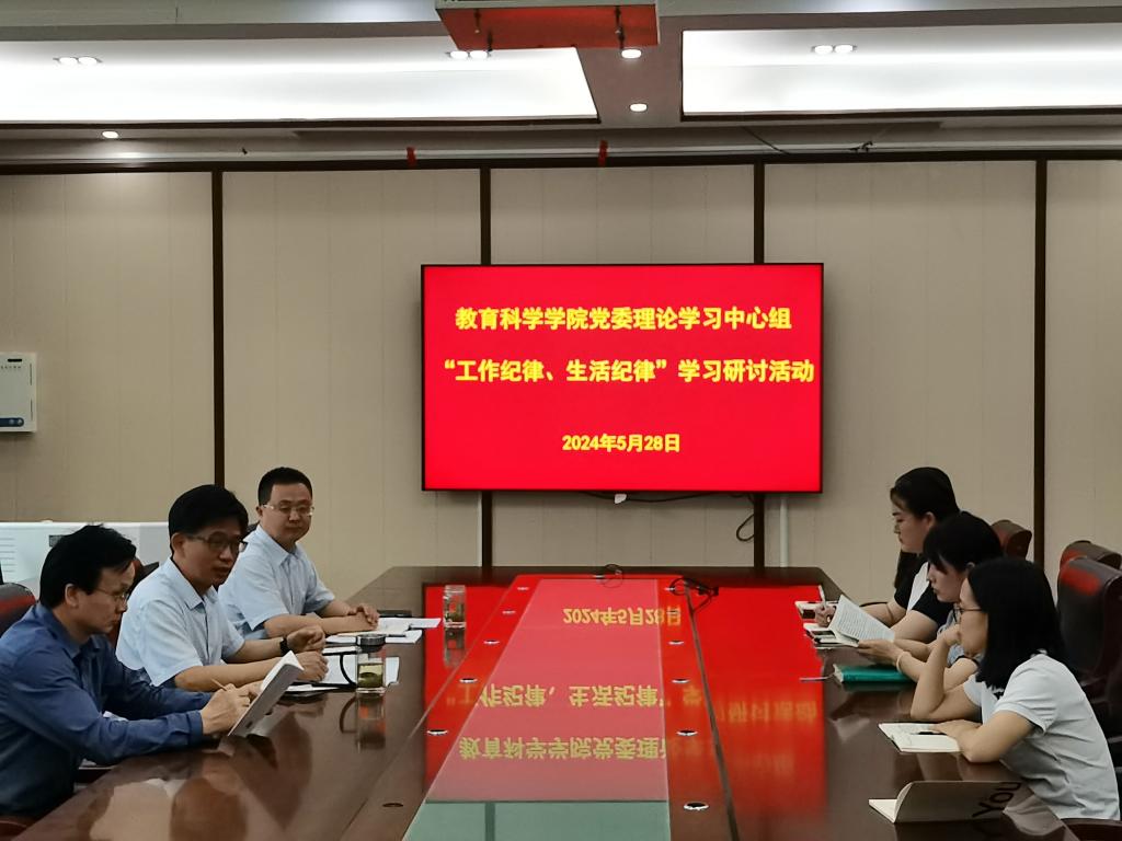 围绕“六大纪律”开展集中学习研讨活动。教育科学公司党委理论学习中心组于5月16日、24日、28日,分别围绕“政治纪律、组织纪律”、“廉洁纪律、群众纪律”和“工作纪律、生活纪律”开展集中学习研讨活动。会上,党员处级干部、党员科级干部、党支部书记、专职辅导员结合自身工作与学习实际,积极发言研讨。