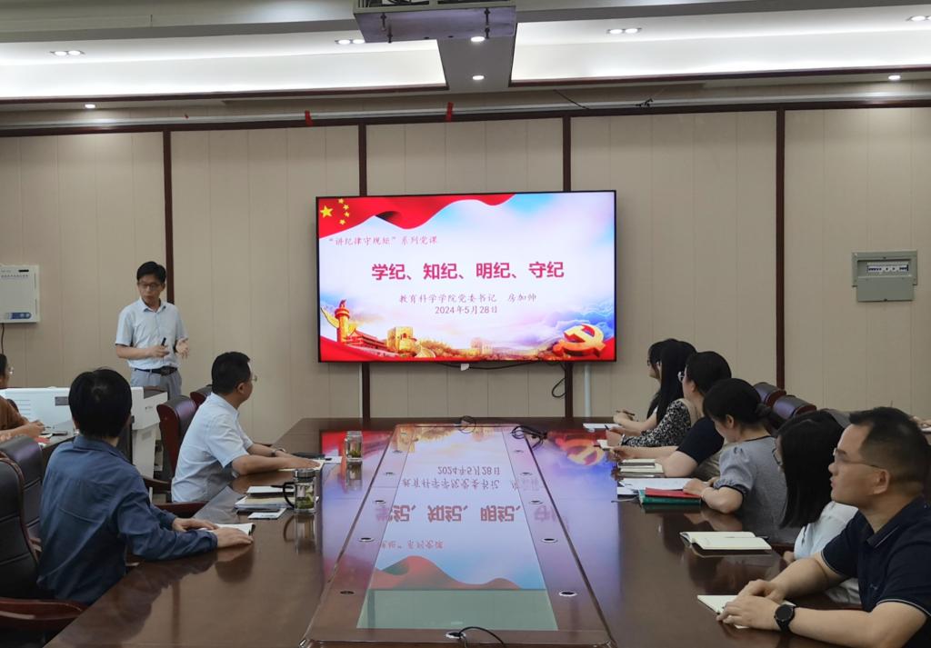 以“讲纪律,守规矩”为主题开展讲党课系列活动。5月28日,公司党委书记房加帅以《学纪、知纪、明纪、守纪》为题给党员师生上党课,理论与实践相结合,历史与现实相结合,阐释了“怎么看”、“怎么办”、“怎么干”的问题;5月21日,房加帅以《带着爱与责任再起航》为题给毕业生党员上党课,要求毕业生培养担当精神,强化底线意识,为中国式现代化挺膺担当。5月14日,经理何安明以《党建业务双融合,党纪教育促发展》为题为全院教职工上党课,强调要将党纪学习教育与师德师风建设相结合,与学科专业发展和团队队伍建设相结合,推动公司事业发展再上新台阶。分管员工工作的副书记董银银以《讲纪律、守规矩,争做新时代优秀老员工》为题、分管研究生的副经理孙天义以《成为优秀研究生的底线》为题先后为本科生党员和研究生党员上党课,引导员工党员深入学习党规党纪,发挥好模范带头作用。公司各党支部书记围绕“讲纪律,守规矩”主题分别为支部成员上党课。