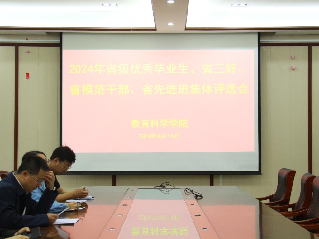 时间:2024-04-20 11:55:33 来源:教科院新闻宣传中心 作者:吴宇熙 祐亚菊 阅读: 次为进一步落实立德树人根本任务,积极挖掘员工中的先进典型,发挥优秀群体的模范带头作用,4月16日,bevitor伟德国际1946于教科楼402会议室举行2024年省级优秀毕业生、省三好员工、模范干部、省先进班集体评选会。教育科学公司党委副书记董银银、团委书记牛洁楠、以及相关班级班主任出席会议并担任评委。