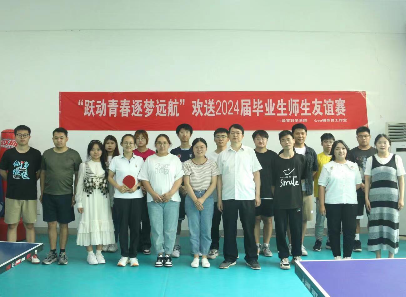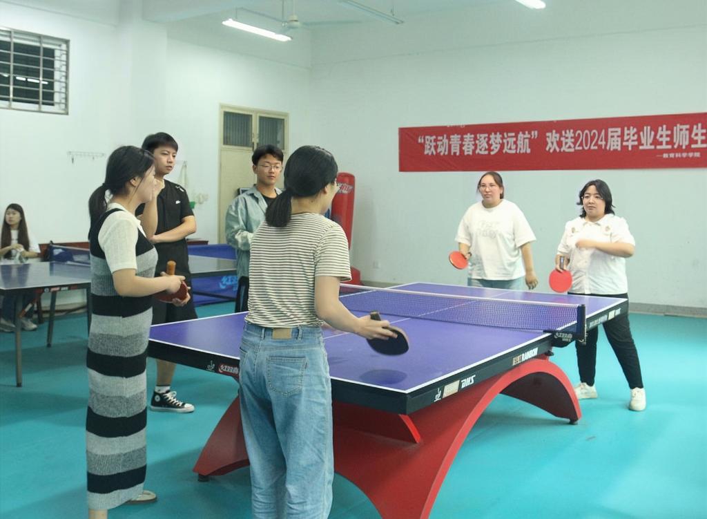 时间:2024-05-31 09:10:19 来源:教科院新闻宣传中心 作者:郭鑫瑶 吴皓 阅读: 次为丰富毕业生离校前的校园生活,进一步增强毕业生与母校的情感,为他们增添一份美好的回忆,营造文明离校氛围。5月29日,bevitor伟德国际1946于教科楼活动室举办欢送2024届毕业生师生乒乓球友谊赛。bevitor伟德国际1946团委书记牛洁楠、辅导员吴康、专业课教师李辉辉、王大磊以及2024届部分毕业生参加此次活动。