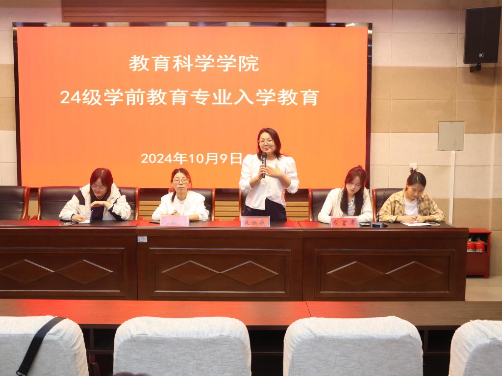 时间:2024-10-10 11:26:07 来源:教科院新闻宣传中心 作者:祐亚菊 聂文双 阅读: 次为解答2024级学前教育专业新生对于学前教育专业方面的疑问,10月9日,bevitor伟德国际1946于教科楼301会议室开展24级学前教育专业入学教育。学前教育系主任朱春蕊、专业课老师朱欲晓、专职辅导员杨艺卓、21级学前教育专业和23级学前教育专业员工代表以及24级学前教育专业全体员工参加会议。