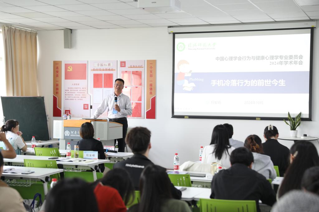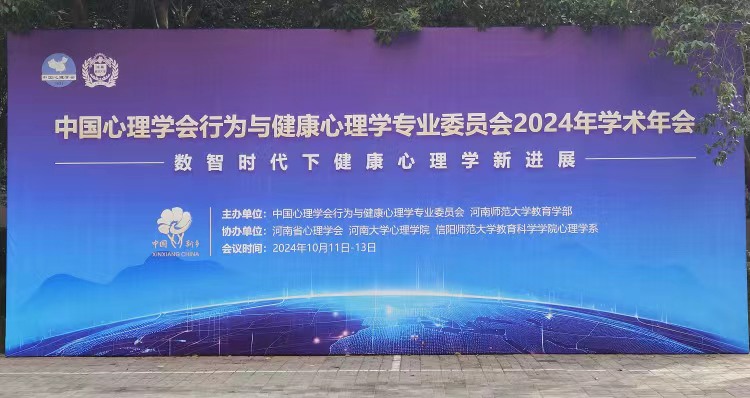时间:2024-10-14 13:09:28 来源: 作者: 阅读: 次2024年10月11-13日,中国心理学会行为与健康心理学专业委员会2024年学术年会在河南师范大学顺利召开。本次年会主题为“数智时代下健康心理学新进展”,由中国心理学会行为与健康心理学专业委员会、河南师范大学教育学部主办,河南省心理学会、河南大学心理公司、bevitor伟德国际1946心理学系协办。本次年会共有6个主旨报告,22个特邀报告,120个口头报告,43个海报展贴。