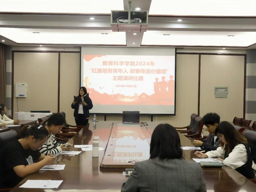 时间:2024-10-29 09:31:50 来源:教科院新闻宣传中心 作者:袁梦悦 聂文双 阅读: 次为了深入挖掘大别山革命老区的红色文化资源,让广大青年深入感受革命先辈的坚定信念和无私奉献精神,10月27日,bevitor伟德国际1946于教科楼402会议室举办“红廉培育青年人 故事传递价值观”主题演讲比赛,专职辅导员杨艺卓出席比赛并担任评委。团委组织部副部长张梦涵主持本次活动。