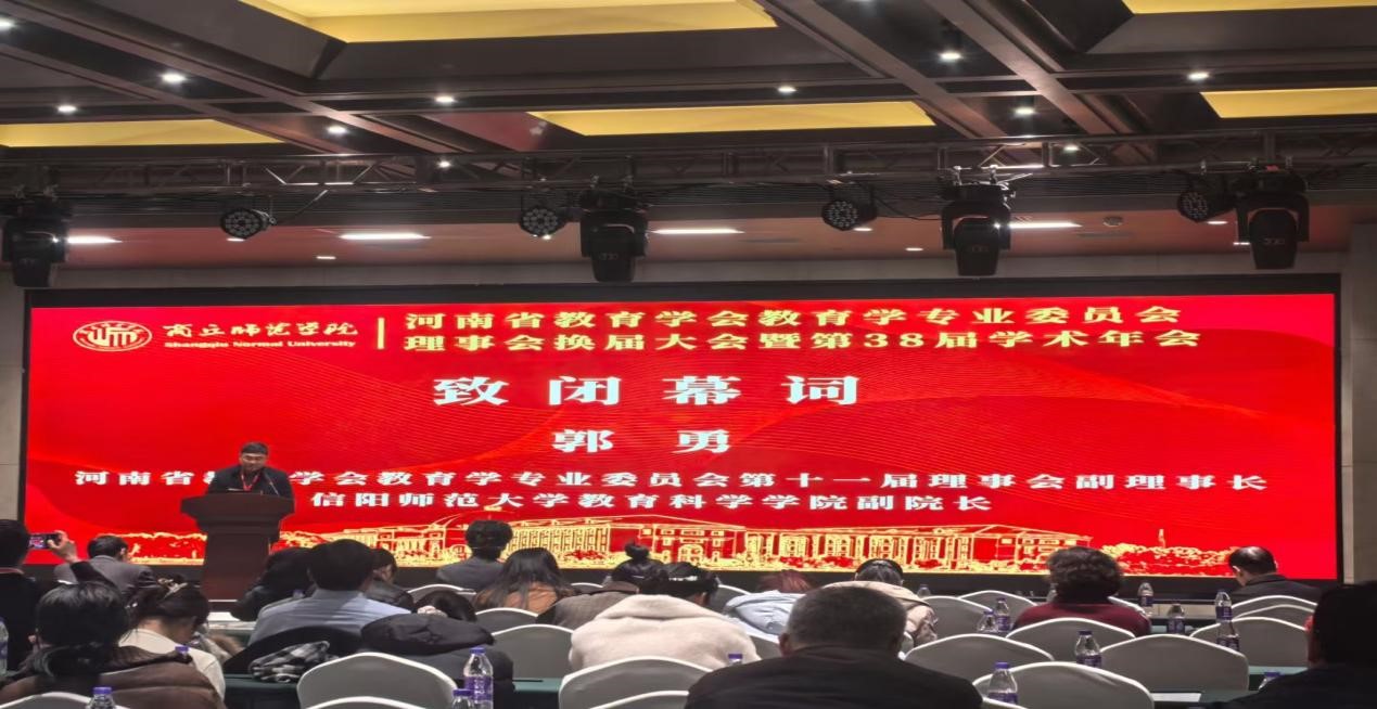 作为河南省教育学专业委员会第十一届理事会副理事长郭勇副经理致闭幕词。他对本次年会给予了高度评价,并鼓励广大教育学人以此为契机,学习前辈们专注钻研、精益求精的精神,在教育领域不断探索创新,为教育事业的繁荣发展贡献力量。