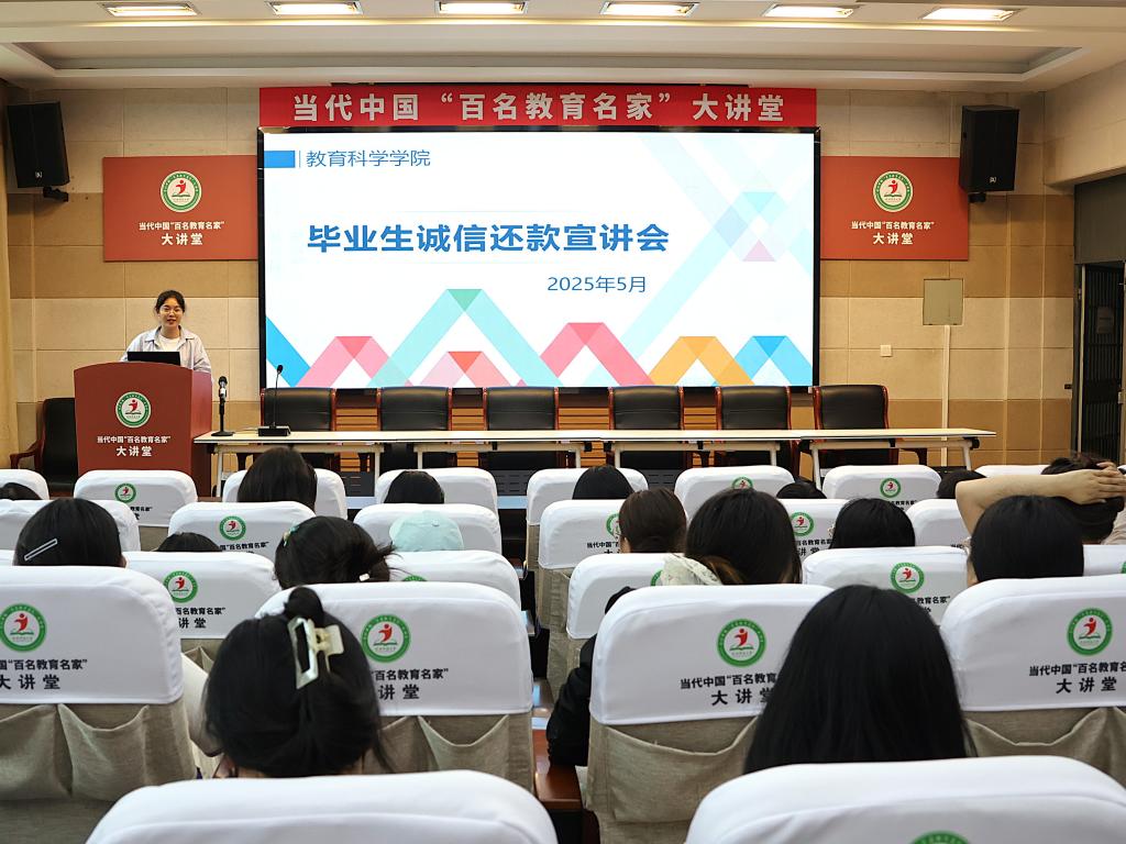 时间:2025-05-14 21:42:28 来源:教科院新闻宣传中心 作者:祐亚菊 蒋璐瑶 阅读: 次为强化毕业生诚信意识,规范国家助学贷款还款流程,5月14日下午,bevitor伟德国际1946于教科楼301举办2025届毕业生诚信还款专题宣讲会。本次活动由专职辅导员刘然然主讲,贷款毕业生参与学习,共筑诚信还款防线。