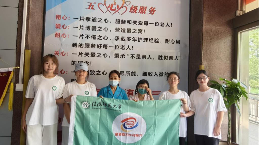 (实践团成员与敬老院工作人员合影)