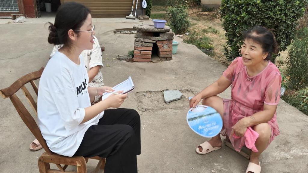 (实践团成员与村民在唠家常中推普)