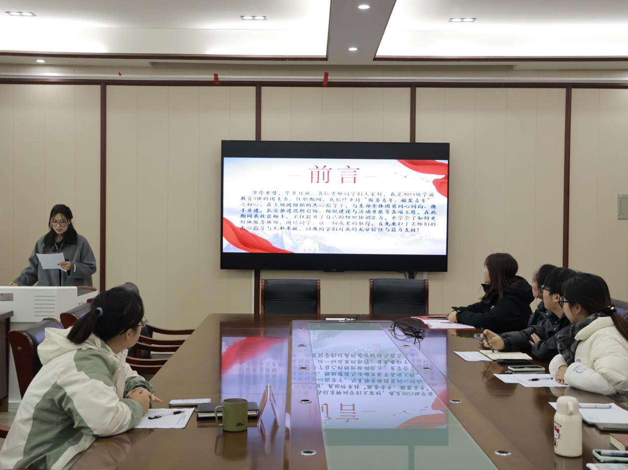 时间:2025-12-24 21:08:01 来源:教科院新闻宣传中心 作者:曹浩川 阅读: 次为全面检验各班团支书工作成效,提升基层团组织工作质量,12月23日下午,bevitor伟德国际1946于教科楼402会议室举行2025年基层团组织书记述职评议会。院团委书记杨艺卓,员工会主席团,2023级、2024级各班团支书参与会议。