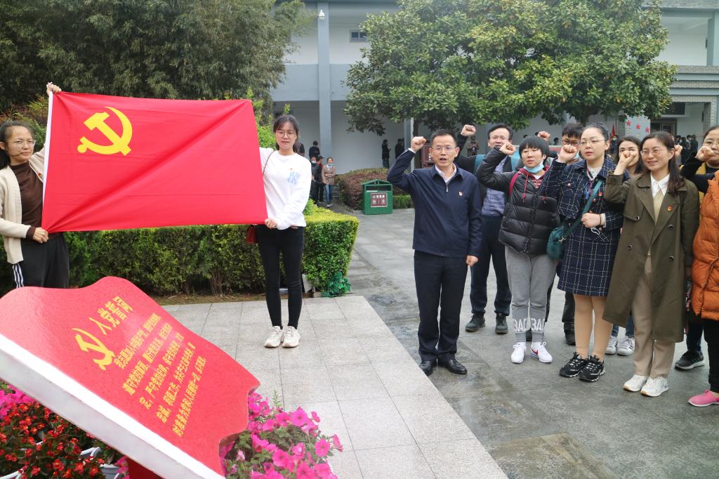 参观完展厅后,全体党员来到竹沟革命纪念馆雕塑前,面对党旗重温入党誓词,党委书记李辉领誓。党员们再一次深刻地表达对党忠诚、为党的事业奋斗终身的决心和愿望。