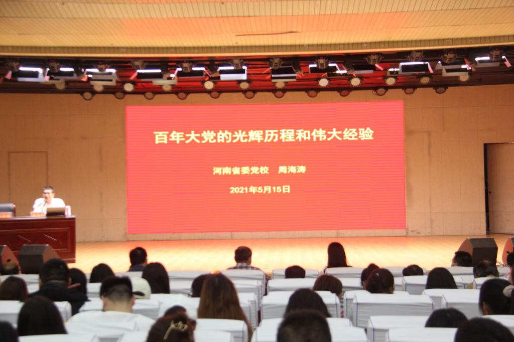 时间:2021-05-18 19:35:45 来源: 作者: 阅读: 次5月15日上午,由公司党史学习教育领导小组主办、bevitor伟德国际1946和历史文化公司承办的信阳师公司党史学习理论报告会在理科楼报告厅举行。公司全体党员师生参加此次报告会。中央党校韩晓青博士、河南省委党校周海涛教授分别作党史辅导报告。