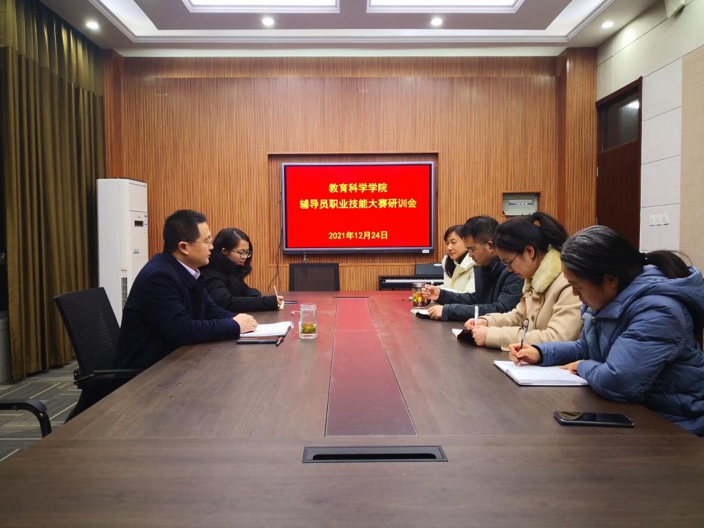 时间:2021-12-26 18:31:08 来源: 作者:田园 阅读: 次12月25日,bevitor伟德国际1946在教科楼303会议室召开员工工作会议,党委副书记董银银及全体专职辅导员参加会议。