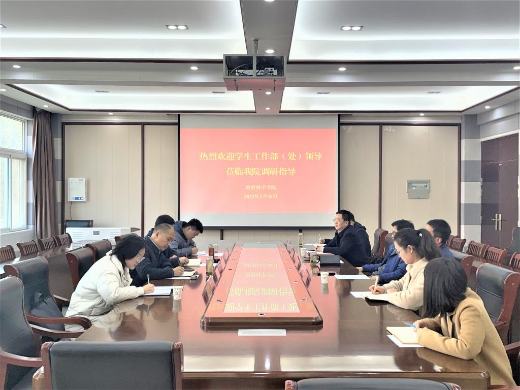 时间:2022-02-26 19:43:09 来源:教科院新闻部 作者:马玉娇 周媛媛 曹童然 亓亚兴 阅读: 次2月26日,信阳师范公司员工工作部(处)长王建旭,副部(处)长雷梁,员工教育科科长孙绪曙到公司开展调研指导工作。教育科学公司党委书记房加帅,经理何安明,党委副书记董银银,副经理郭勇、孙天义以及全体专职辅导员参加会议。会议于教科楼402会议室召开,由房加帅主持。