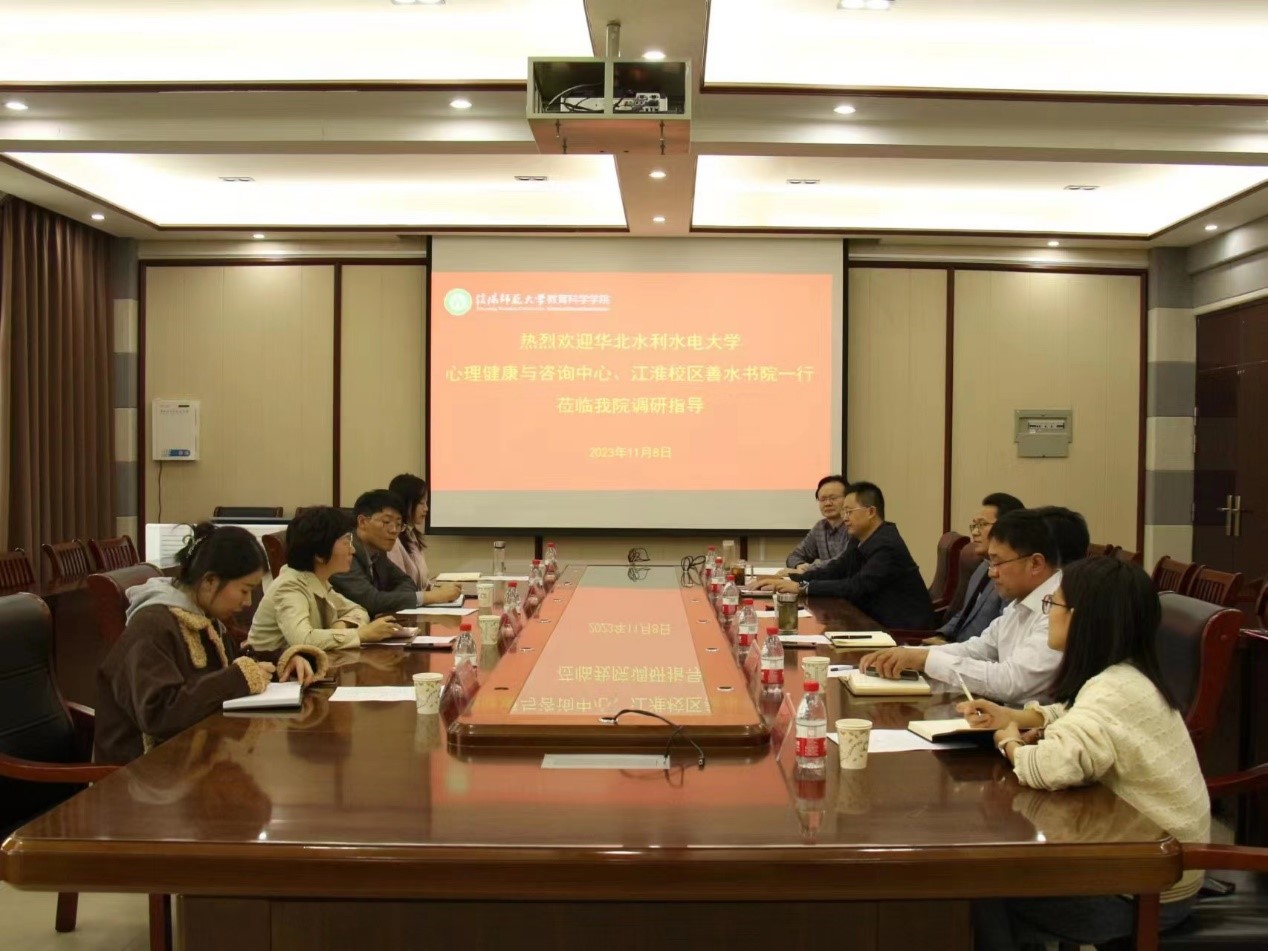 会议伊始,房加帅对宋凯果一行的到来表示热烈欢迎,并简要介绍了bevitor伟德国际1946的基本情况。李贵杰从心理健康教育课程建设、人员配备、经费投入、心理咨询及相关活动等方面介绍了公司心理健康教育工作的现状与经验。车华简要介绍了华北水利水电大学江淮校区的情况。宋凯果围绕江淮校区老员工心理教育咨询工作进行了交流,希望与公司在心理健康教育、心理学专业员工实习实践等方面深入合作。会后,宋凯果一行现场参观了公司老员工心理咨询中心。