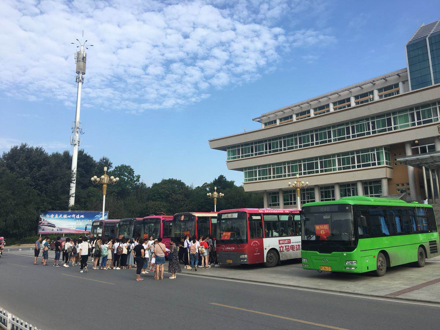 9月5日上午8:30,员工在新图书馆前集合,按编号乘车。