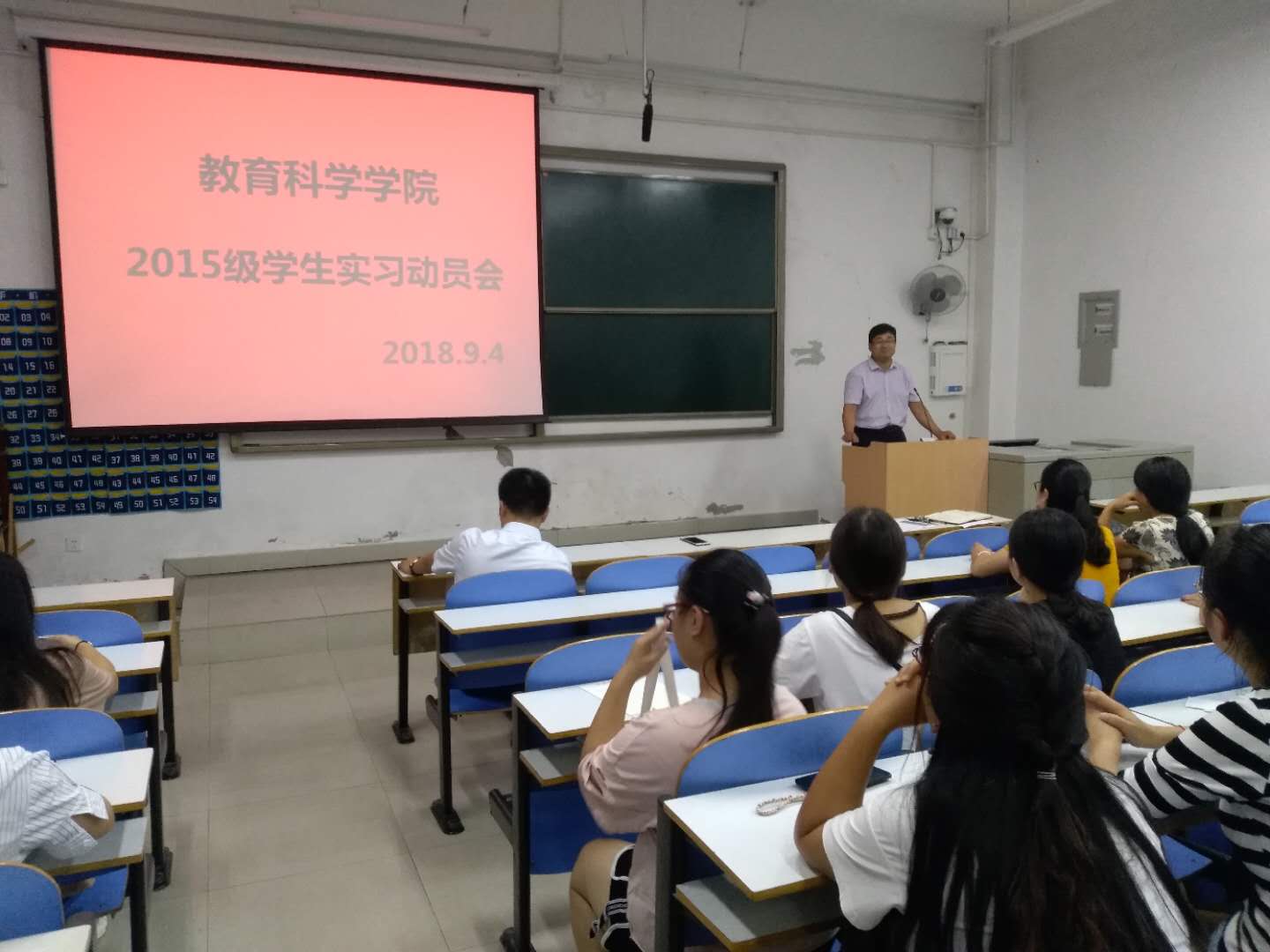 9月4日晚上,bevitor伟德国际19462015级本科员工和2016级学前教育专科员工约300人,在教科楼108室召开实习动员会。bevitor伟德国际1946领导高度重视员工实习工作,参会人员有教学副经理郭勇、副书记李贵杰、班主任张纪娥老师、李慧丽老师。大会由黄伟玲老师主持,首先,副经理郭勇重点讲了实习的重要性,实习内容,并殷切希望同学们充分利用实习机会提高自己。