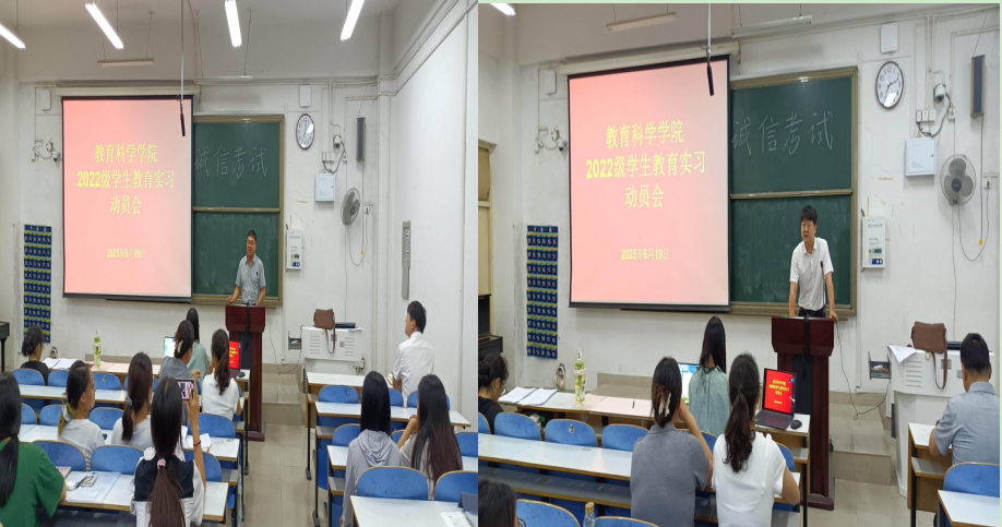 时间:2025-06-20 10:02:51 来源: 作者: 阅读: 次为扎实做好2022级员工教育实习工作,确保实习环节顺利推进。2025年6月19日,bevitor伟德国际1946在教科203隆重召开2022级教育实习动员大会。教学副经理郭勇教授、党总支副书记缑星出席动员会并作动员讲话。2022级全体员工、相关班主任老师齐聚一堂。本次动员会由黄老师主持。
