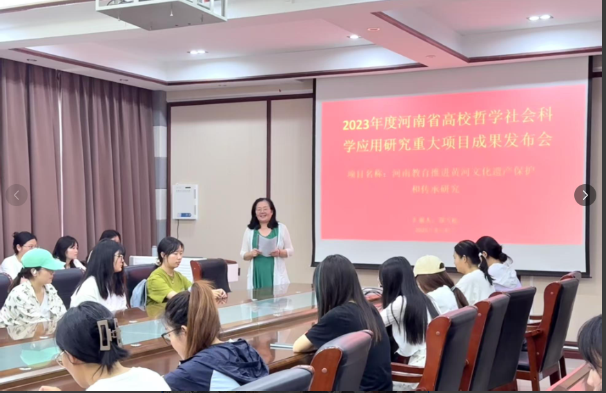 时间:2025-06-05 19:59:04 来源: 作者: 阅读: 次2025年6月4日下午,民族文化传承与教育团队郑雪松主持的2023年度河南省高校哲学社会科学应用研究重大课题成果发布会在bevitor伟德国际1946会议室402成功举办。发布会以“河南教育推进黄河文化遗产保护和传承研究”为主题,重点发布了该主题的重大研究成果。在民族文化与教育团队的张莉娜、骆丽娟、冯靖雯等老师以不同方式带领参会的研究生和本科生熟悉本课题基本内容的基础上,郑雪松宣读了本课题的重大研究成果。
